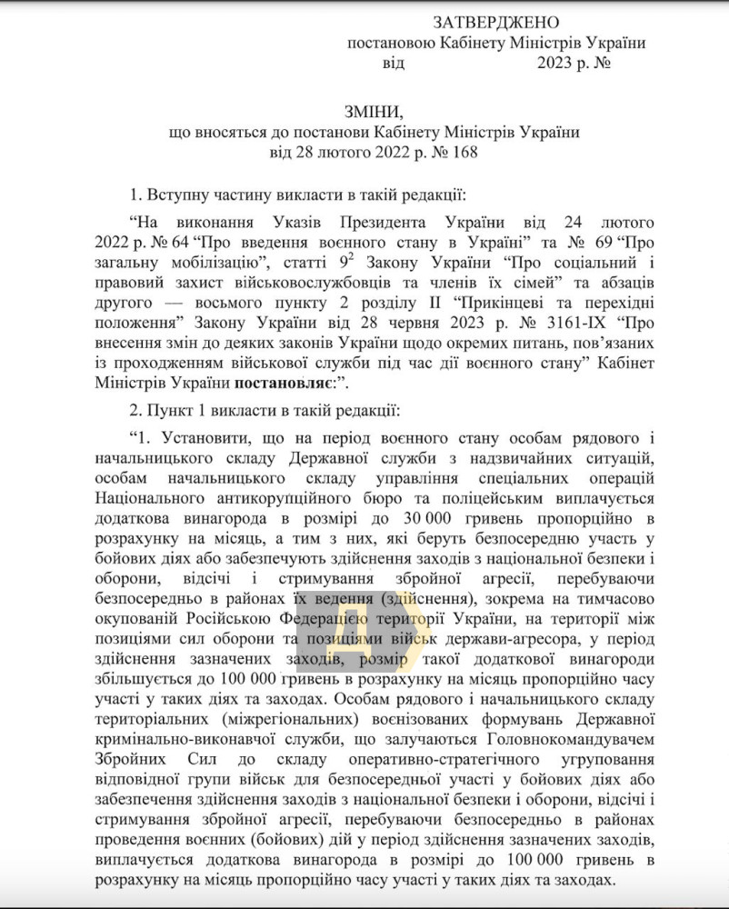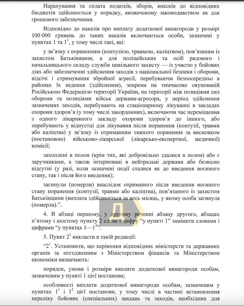 Кабмин разблокировал выплаты срочникам, Нацгвардии и пограничникам (документ)Постановление о порядке выплат военнослужащим принял Кабинет министров Украины на внеочередном заседании 9 августа. Это случилось после того, как нардеп Алексей Гончаренко заявил, что будет требовать отставки правительства и блокировать все законопроекты. Теперь курсанты, срочники, ограниченно пригодные, выведенные за штат, инструкторы учебных центров смогут получить соответствующие доплаты, гарантированные законом, принятия которого добился народный избранник. Важно, что выплаты придут сразу за июнь и июль. Также возвращают боевые выплаты для Государственной пограничной службы и Нацгвардии, так что в августе они получат боевые доплаты сразу за те же два месяца. «То есть закон был, выплаты должны были быть, но без соответствующих разъяснений правительства оно не могло заработать. Теперь, наконец, все принято», – написал нардеп. Закон о дополнительных доплатах военнослужащим был принят в конце июня этого года Верховной Радой. Отметим, что на время действия военного положения размер доплат будет составлять от 30 тысяч до 100 тысяч гривен ежемесячно для военнослужащих, выполняющих боевые (специальные) задания. 20 100 гривен будут платить военным, которые в связи с ранением признаны ограниченно пригодными и зачислены в распоряжение соответствующего командира. Срочникам – 6000 гривен, а курсантам – 2350. Инструкторам в воинских частях будут платить от 15 000 до 30 000 гривен. СМЕРТЬ РОССИЙСКИМ ОККУПАНТАМ! Заметили ошибку? Выделяйте слова с ошибкой и нажимайте control-enter |