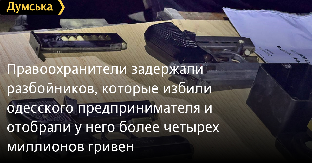 Правоохоронці затримали розбійників, які побили одеського підприємця і відібрали понад чотири мільйони гривеньДвох розбійників, які наприкінці січня увірвалися до будинку одеського підприємця і відібрали в нього гроші, затримали правоохоронці. Як повідомили у пресслужбі поліції Одеської області, подія сталася на вулиці Лузанівській. Розбійники за допомогою драбини перелізли через паркан і проникли в будинок, скориставшись незачиненими дверима. Зловмисники почали залякувати фізичною розправою чоловіка і жінку, приставляти пістолети до їхніх голів, вимагаючи гроші, а щоб не пручалися і не заважали – зв’язали їх. Коли вони отримали інформацію, де зберігаються заощадження, зловмисники забрали гроші в національній та іноземній валютах, цінні речі, коштовні прикраси, банківську картку, позривали коштовності з потерпілих і втекли. Загальна сума завданої шкоди перевищила 4 млн 400 тис. гривень. Потерпілі сповістили поліцію і розповіли, що нападників було троє, і всі вони були в масках. Правоохоронці протягом двох тижнів викрили причетних до розбою осіб. Ними виявилися раніше судимі за майнові злочини, у тому числі розбійні напади, двоє громадян сусідньої держави та житель селища Таїрове віком 30-ти, 31-го та 56-ти років. За місцями проживання фігурантів поліцейські провели санкціоновані обшуки, під час яких вилучили частину викрадених грошей, коштовності та кілька пістолетів травматичної дії. Двох чоловіків правоохоронці затримали і повідомили їм про підозру у вчиненні злочину, передбаченому ч. 4 ст. 187 Кримінального кодексу України. Санкція статті передбачає покарання у вигляді позбавлення волі на строк від восьми до 15 років із конфіскацією майна. Нині поліцейські шукать третього фігуранта. Помітили помилку? Виділяйте слова з помилкою та натискайте control-enter Новини по цій темі: 29 липня 2025: В Усатово Одеської області сталася перестрілка: поліція працює на місці (відео, оновлено) 28 липня 2025: П'яний на "Ягуарі" або гіпертонік? Звільнений топ-посадовець одеської поліції хоче повернутися на службу 19 червня 2025: Дівчинку, яку шукали сотні одеситів, знайшли вбитою: поліція працює з чоловіком, ймовірно причетним до загибелі 27 травня 2025: Увели гектар в університету: на Одещині засудили земельних аферистів, але без посадки і Хвоста |