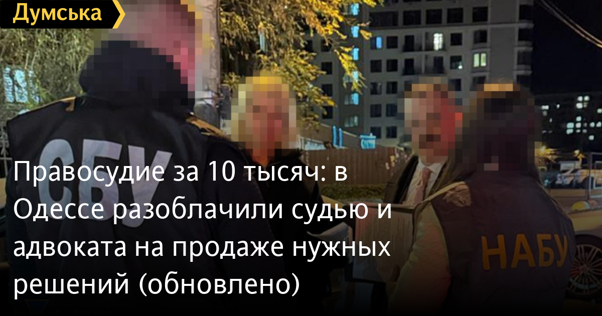 Правосудие за 10 тысяч: в Одессе разоблачили судью и адвоката на продаже нужных решений (обновлено)Коррупционную схему, в которой были задействованы местный судья и адвокат, разоблачили СБУ и НАБУ в Одессе. Они предлагали участникам гражданских дел «договориться» о нужном решении в суде за деньги, сообщают в пресс-службе СБУ. По данным правоохранителей, фигуранты обратились к ответчику и предложили «решить вопрос» за 10 тысяч долларов. Деньги планировали получить в два этапа: часть — до рассмотрения дела, остальную — перед принятием решения. Оперативники задокументировали все действия и задержали судью и адвоката во время получения второй части взятки. Обоим уже объявили подозрение, сейчас решают вопрос о мере пресечения. Подозреваемым грозит до восьми лет лишения свободы с конфискацией имущества. По данным «Думской», НАБУ недавно интересовалось двумя судьями Приморского райсуда — Денисом Донцовым и Ольгой Шенцевой, которой даже вручили подозрение. Наши источники сообщили, что эти судьи поспешно ушли в отпуск. ОБНОВЛЕНО В 11:24. Источник в правоохранительных органах подтвердил, что под подозрением — судья Донцов. Ему и его сообщнице адвокату, которая является близкой родственницей, уже избрали меру пресечения в виде залога без содержания под стражей. СМЕРТЬ РОССИЙСКИМ ОККУПАНТАМ! Заметили ошибку? Выделяйте слова с ошибкой и нажимайте control-enter |
