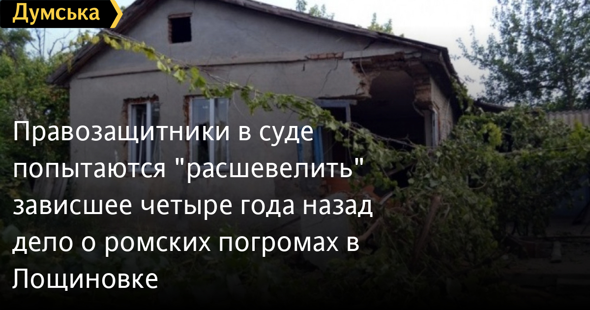 Правозащитники в суде попытаются «расшевелить» зависшее четыре года назад дело о ромских погромах в ЛощиновкеАдвокаты Юлия Лисовая и Владимир Кондур при поддержке Украинской Хельсинской группы подали апелляционную жалобу на судебное решение, которым рассмотрение иска изгнанных четыре года назад ромов из Лощиновки назначено только после рассмотрения дела о попустительстве местных полицейских, которые допустили ромские погромы. Юлия Лисовая отмечает, что таким решением суд фактически отказался рассматривать резонансное дело. Дело полицейских зависло в суде и не продвигается уже четыре года, в нем до сих пор даже нет подозреваемых. «Что это значит? Это означает, что судья решила не рассматривать наш иск никогда, поскольку я не вижу оснований считать, что уголовное дело, которое не расследовалось 4 года, начнет расследоваться. А значит и приговора по нему не будет», — считает Лисовая. Напомним, что после погромов в августе 2016 года ромы в суде пытались оспорить дискриминационное решение председателя Лощиновского сельсовета Виктора Паскалова, который после народного схода изгнал семь ромских семей из села и взыскать материальный ущерб в размере 700 тыс. грн. Также ромы пытались доказать виновность полицейских, при попустительстве которых в селе произошли погромы ромских домовладений. В прошлом году суд частично удовлетворил требования ромов, признал их изгнание из Лощиновки незаконным и обязал выплатить компенсацию морального ущерба. Погромы в Лощиновке произошли после жестокого убийства девятилетней девочки, в котором подозревается 20-летний ром. Суд по этому делу продолжается до сих пор. Виновность парня пока не доказана. СМЕРТЬ РОСІЙСЬКИМ ОКУПАНТАМ! Помітили помилку? Виділяйте слова з помилкою та натискайте control-enter |