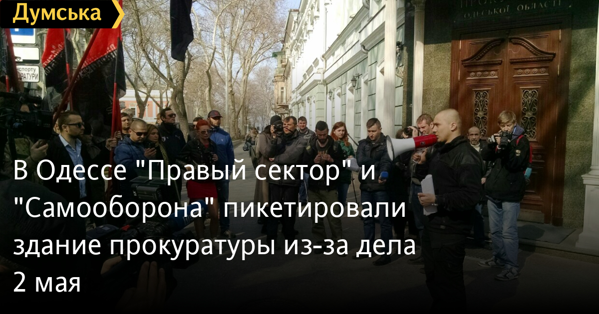 Сегодня, 22 марта, активисты проукраинских общественных организаций пикетировали здание прокуратуры Одесской области и передали обращение заместителю генпрокурора Украины Давиду Сакварелидзе.