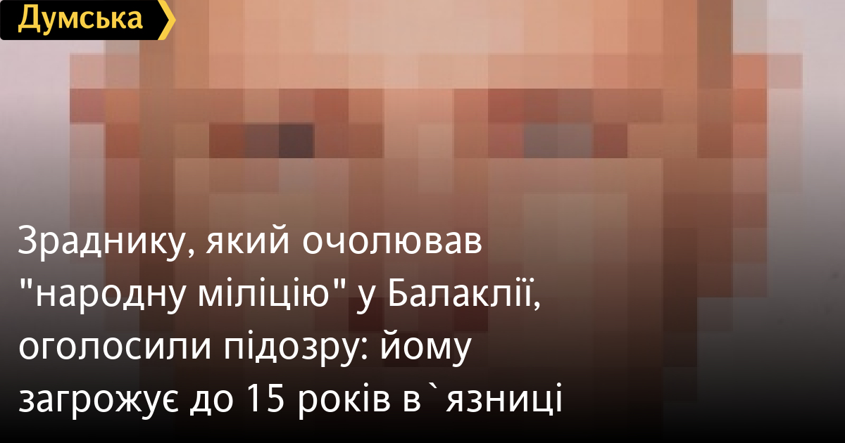 Зраднику, який очолював так звану «народну міліцію» у Балаклії, оголосили про підозру. Тепер йому загрожує від 12 до 15 років ув'язнення.