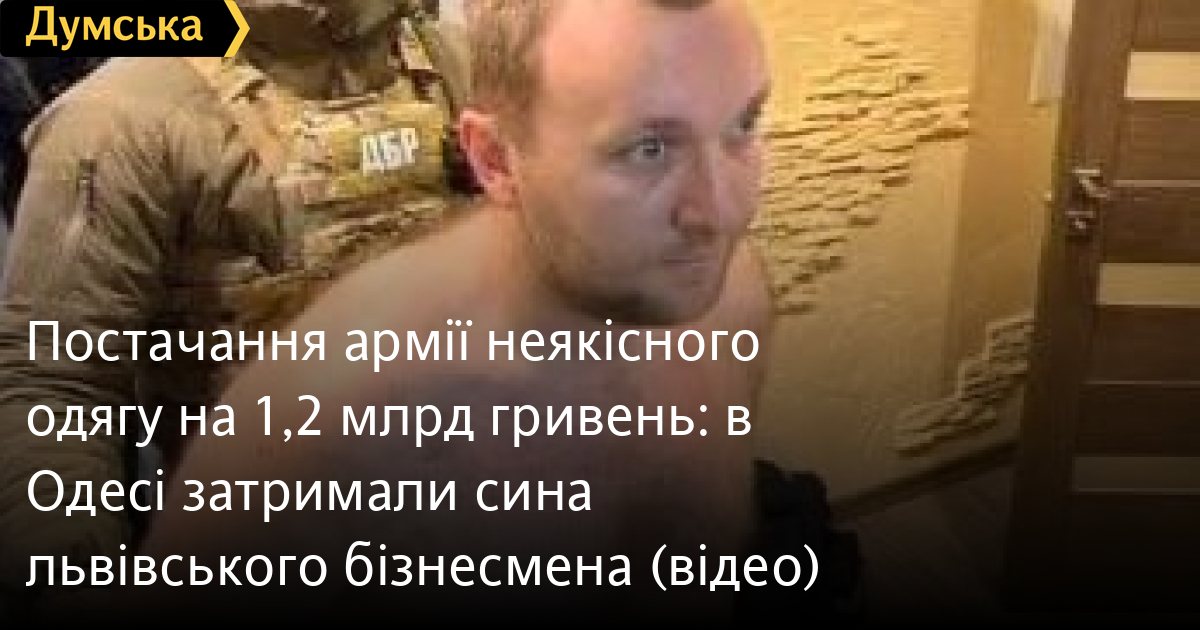 Постачання армії неякісного одягу на 1,2 млрд гривень: в Одесі затримали сина львівського бізнесмена (відео)Сина львівського бізнесмена Ігоря Гринкевича, який намагався підкупити керівництво Державного бюро розслідувань, затримали в Одесі під час спроби втекти з країни. Як повідомив генеральний прокурор Андрій Костін, Роман Гринкевич є п'ятим учасником злочинної організації, яка постачала Збройним силам України неякісний одяг, тим самим завдавши збитків держбюджету в розмірі 1,2 млрд гривень. Він приїхав до нашого міста приблизно 17 січня і відтоді готувався до незаконного перетину кордону. 19 січня суд дозволив затримати його, що правоохоронці й зробили рано вранці 22 січня. Наразі вирішується питання про обрання затриманому запобіжного заходу. Решта четверо підозрюваних перебувають під вартою. Раніше правоохоронці заарештували майно сім'ї Ігоря Гринкевича та підконтрольних йому компаній. Він пропонував хабар одному з керівників ДБР у розмірі 500 тисяч доларів за допомогу в поверненні вилученого у рамках кримінального провадження майна. Суд відправив його під варту з можливістю виходу під заставу в розмірі понад 420 млн грн. Помітили помилку? Виділяйте слова з помилкою та натискайте control-enter