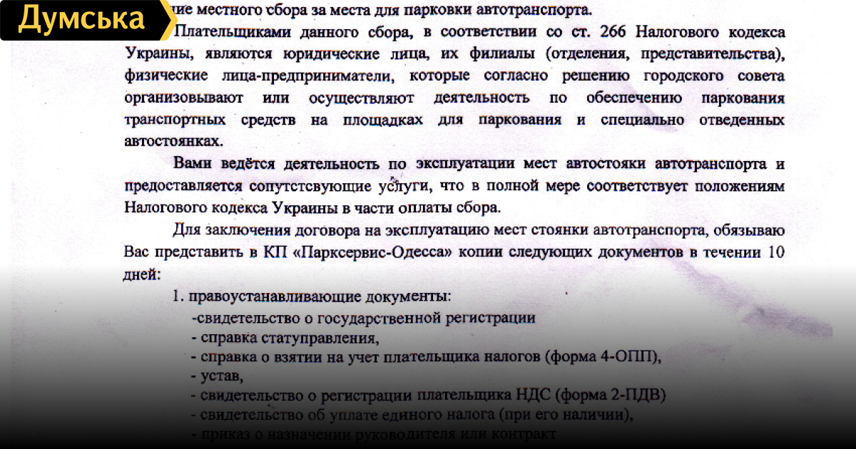 В ходе сегодняшнего брифинга новоназначенного начальника КП «Парксервис-Одесса» Валентина Гапунича, он рассказал, что некоторые общественные деятели распространяют неправдивые сведения, посвященные вопросу заключения новых договоров с «Парксервисом». Напомним, что по мнению общественных автомобильных организаций Одессы, а также ряда депутатов горсовета, согласно новому Налогому Кодексу, новые правила парковочного сбора распространяются только на автостоянки, построенные за счет городского бюджета, а на сегодняшний день таковых в Одессе нет — все они были построены за счет средств автолюбителей и организаций, обслуживающих стоянки. «Они вводят людей в заблуждение, что может привести к неприятным последствиям, — сообщил Валентин Гапунич. — Они читают начало 266.2.1 статьи Налогового Кодекса, но не дочитывают до конца. Полностью статья звучит так: «Объектом налогообложения является земельный участок, который согласно с решением сельского, поселкового или городского совета специально отведен для обеспечения паркования транспортных средств на автомобильных дорогах общего пользования, тротуарах или в других местах, а также коммунальные гаражи, стоянки, паркинги (строения, сооружения и их части), которые построены за счет средств местных бюджетов, за исключением площади земельного участка, который отведен для бесплатного паркования транспортных средств, предусмотренных статьей 30 Закона Украины «Про основы социальной защиты инвалидов в Украине» «Объетом налогообложения является земельный участок, который решением горсовета специально отведен под коммунальные гаражи, парковки, стоянки и т.д. — подчеркнул Валентин Гапунич. — Земля, на котором они находятся — это не частная собственность, а собственность города, всех одесситов». Также Валентин Гапунич сообщил, что в данное время специалисты экономически обосновывают новые тарифы на парковку. «По Налоговому кодексу, владельцы парковок должны заплатить в день в городской бюджет 7 грн. 25 копеек за каждое парко-место. Для этого тарифы должен быть больше», — отметил он. Точную сумму он назвать не смог. Касаясь же своих планов, Валентин Гапунич отметил, что «Парксервис» намерен кардинально изменить отношение владельцев стоянок и парковок к автовладельцам, потому что сейчас, если с автомобилем что-нибудь случается на стоянках и парковках, никто ответственности за это не несет, а водитеели остаются ни с чем. «Допутим, сгорел автомобиль на стойнке. Договора нет - ответственности нет. Поэтому «Парксервис» намерен обязать владельцев парковок заключать договора со страховыми компаниями, чтобы автовладелец, с машиной которого случилась неприятность, знал, что ему возместят ущерб», — подчеркнул чиновник. СМЕРТЬ РОСІЙСЬКИМ ОКУПАНТАМ! Помітили помилку? Виділяйте слова з помилкою та натискайте control-enter