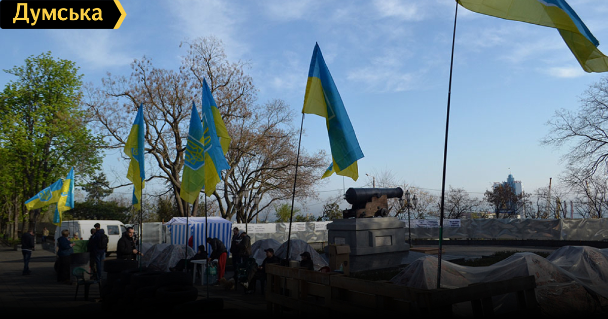 На Думской площади, у здания Одесского горсовета, вырос палаточный городок.