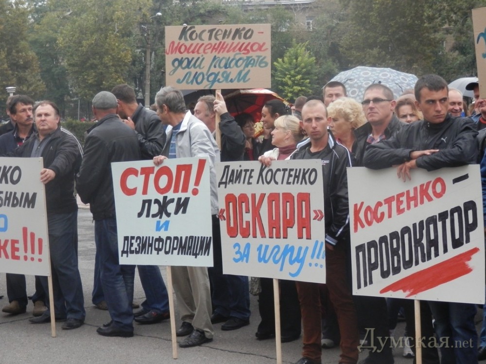 Предприниматели промтоварного рынка «Седьмой километр» 13 сентября провели митинг у стен облгосадминистрации, выступая против своей коллеги и известной активистки Ольги Костенко. По словам протестующих, причинной очередного конфликта стало публичное обращение госпожи Костенко к руководству страны. Глава инициативной группы предпринимателей Виктор Кудлай заявил, что ее действия дестабилизируют обстановку на рынке, подрывают имидж предприятия, что в конечном итоге сказывается на потребительском спросе. «Последней каплей, переполнившей наше терпение, стало ее выступление в информационном агентстве УНИАН, где она решила обратиться через СМИ к Генеральному прокурору и Президенту Украины с просьбой организовать тотальную проверку предпринимателей на территории Промтоварного рынка. Она мотивировала свои слова огульным обвинением предпринимателей в ведении теневого бизнеса, при этом не приводя никаких конкретных фактов. И все это от имени профсоюза «Еднисть», от имени тысяч и тысяч предпринимателей, якобы состоящих в его рядах», — отметил он. «Мы на рынке 15 лет, но такого, чтоб мне кто-то диктовал условия, как мне вести себя со своей частной собственностью, еще не было. Она будоражит весь рынок своим шизофреническим поведением», — говорит одна из предпринимателей Лидия Мартынова. Торговцы уверены, что активность Костенко – политический заказ конкурентов или завистников промрынка. «Мы подавали заявления в милицию, делали публичные заявления, ее неоднократно штрафовали, но угомониться она не может. При этом заявляет, что уже полтора месяца ничего не ест в знак протеста против определения суда, запрещающего ей вести противоправную общественную деятельность на территории рынка. В это сложно поверить», — добавил Виктор Кудлай. Участники митинга направили обращение на губернатору Одесской области Эдуарду Матвийчуку с просьбой «способствовать сохранению общественного порядка, спокойной и деловой атмосферы на промтоварном рынке, организовать проверку работы лжеорганизации «Еднисть» и оградить предпринимателей от деятельности гражданки Костенко». СМЕРТЬ РОСІЙСЬКИМ ОКУПАНТАМ! Помітили помилку? Виділяйте слова з помилкою та натискайте control-enter |