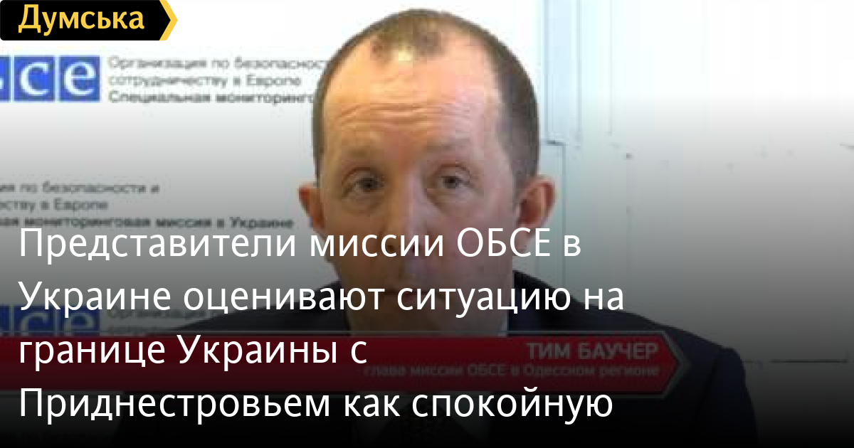 Представители миссии ОБСЕ в Украине оценивают ситуацию на границе Украины с Приднестровьем как спокойнуюСМЕРТЬ РОССИЙСКИМ ОККУПАНТАМ! Заметили ошибку? Выделяйте слова с ошибкой и нажимайте control-enter Думская ТВ. Сюжеты: