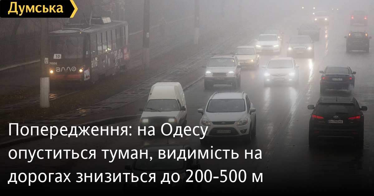 Попередження: на Одесу опуститься туман, видимість на дорогах знизиться до 200-500 мТуман очікується в Одесі вночі та вранці 14 жовтня, видимість на дорогах знизиться до 200-500 метрів. Про це повідомляє Гідрометцентр Чорного та Азовського морів. За прогнозами синоптиків, 14 жовтня в Одесі очікується мінлива хмарність без опадів. Температура повітря вночі 11-13°С, вдень 19-21°С. Помітили помилку? Виділяйте слова з помилкою та натискайте control-enter Новини по цій темі: 7 листопада 2025: До +16, але з дощами: в Одесі прогнозують погіршення погоди 29 жовтня 2025: Котельні готові: Одеса увімкне опалення за два тижні, а початок листопада буде аномально теплим 6 жовтня 2025: Через погіршення погоди школи та садочки Одеської області переводять на дистанційне навчання 1 жовтня 2025: Катастрофа, яку можна було попередити (блог) |