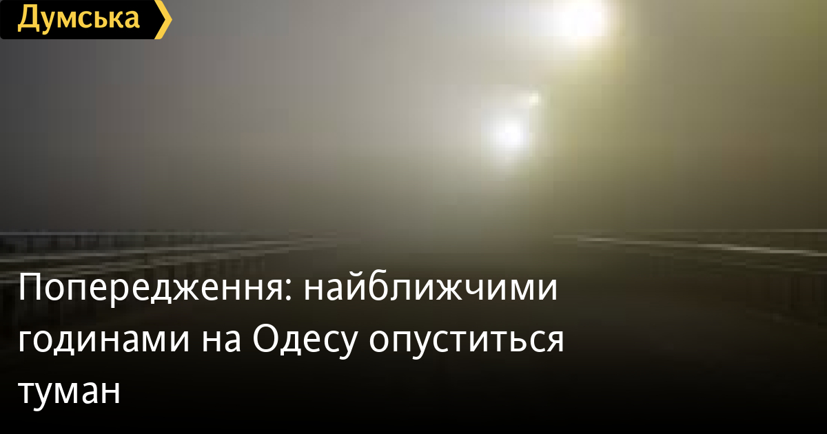 Попередження: найближчими годинами на Одесу опуститься туманУ найближчі 1-2 години в Одесі та місцями по області очікується туман — видимість на дорогах знизиться до 500-1000 м. Про погіршення погоди повідомляє обласне управління ДСНС. Туман протримається до кінця доби 12 грудня, а також уночі та вранці 13-го. СМЕРТЬ РОСІЙСЬКИМ ОКУПАНТАМ! Помітили помилку? Виділяйте слова з помилкою та натискайте control-enter |