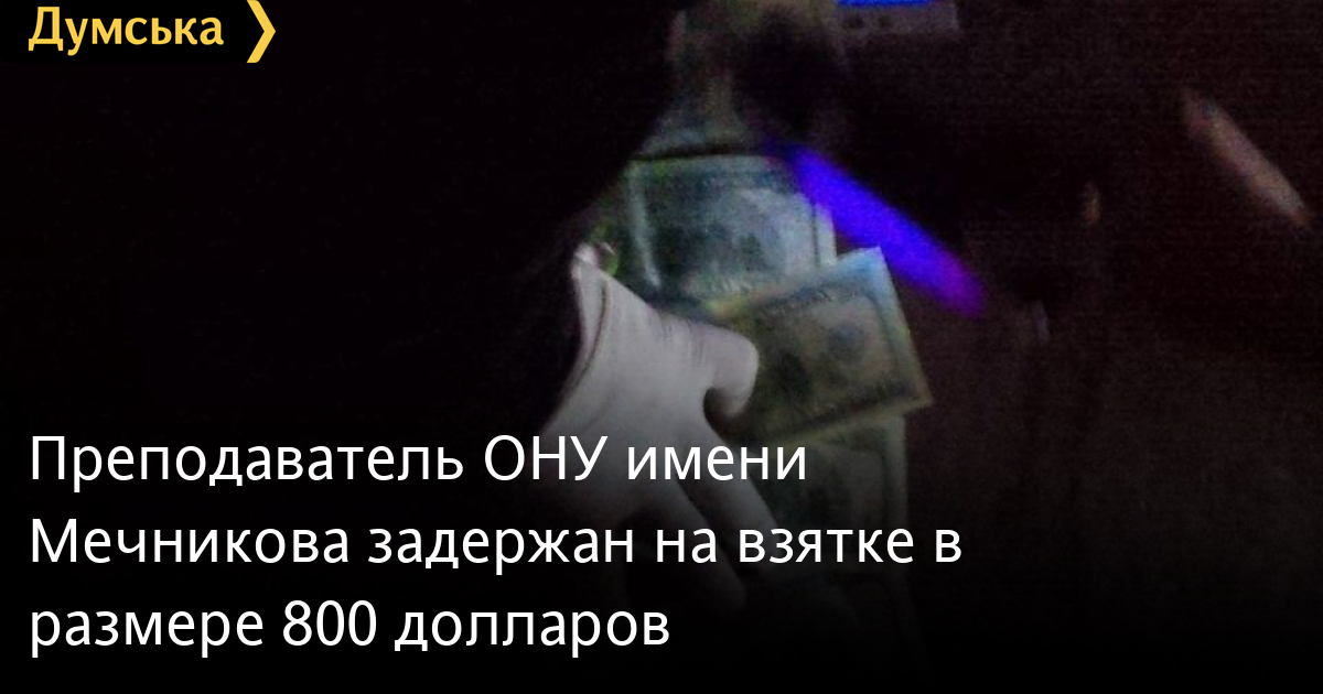 Сегодня утром сотрудники СБУ задержали на взятке преподавателя ОНУ имени Мечникова.