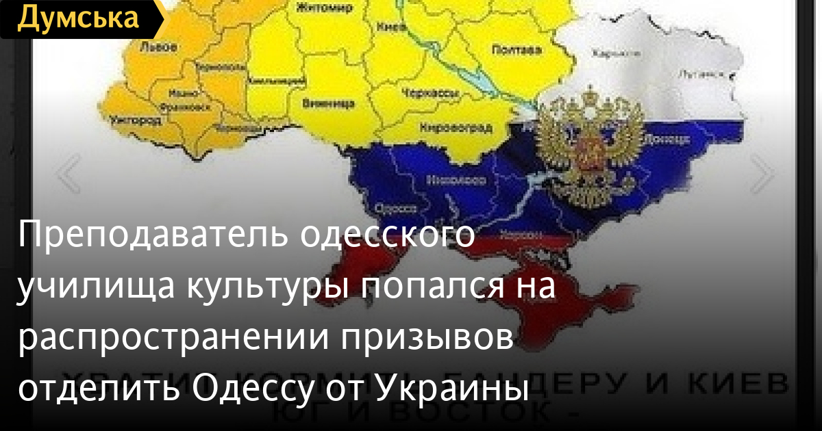 Приморский районный суд Одессы отправил под домашний арест преподавателя Одесского училища искусств и культуры, подозреваемого в распространении призывов отделить южные регионы от Украины.