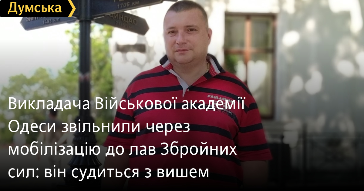 Викладача Військової академії Одеси звільнили через мобілізацію до лав Збройних сил: він судиться з вишемЦивільного викладача кафедри гуманітарних та соціально-економічних дисциплін Військової академії Одеси Олександра Дороніна звільнили через те, що його призвали захищати батьківщину. Наразі він намагається оскаржити це рішення у суді та впевнений, що виграє справу, повідомляє кореспондент «Думської». Олександр розповів нам, що отримав повістку про призов на службу з мобілізації 24 лютого, у день початку повномасштабної війни, і незабаром був уже в лавах Збройних сил. Тиждень він ще ходив працювати в академію, а ввечері заступав на охорону порядку в місті. Проте 1 березня він дізнався про звільнення з посади викладача. За словами одесита, виш грубо порушив закон: згідно з Кодексом законів про працю України, співробітникам, які були призвані на військову службу з мобілізації, гарантується збереження місця роботи та посади. «Виписку з наказом мені віддали лише за місяць, – каже Доронін. — В академії посилаються на те, що на викладачів є броня і призвати мене не мали права, але у військкоматі сказали, що броні немає. Я показав мобілізаційний талон, але цього було недостатньо». Він подав позов до суду. Чергове засідання заплановане на 15 вересня. Олександр Доронін працює у Військовій академії з 2019 року. 2021 року він виграв конкурс на посаду викладача. Заміну Дороніну поки що не знайшли, тому що для цього потрібна людина з кандидатським ступенем політичних наук. Тому його ставку розкидали на інших викладачів, які, за словами нашого співрозмовника, не дуже компетентні в його дисципліні. СМЕРТЬ РОСІЙСЬКИМ ОКУПАНТАМ! Помітили помилку? Виділяйте слова з помилкою та натискайте control-enter |