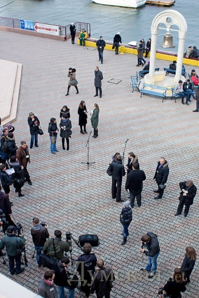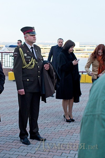 Во время общения с прессой Андриса Берзиньша охраняли лично начальник облУВД Сергей Резников и его зам Дмитрий Фучеджи. Гость общался с одесситами на русском языке, но с заметным акцентом, и сообщил, что он уже сбился со счета, сколько именно договоров и документов было подписано за время этого визита в Украину.