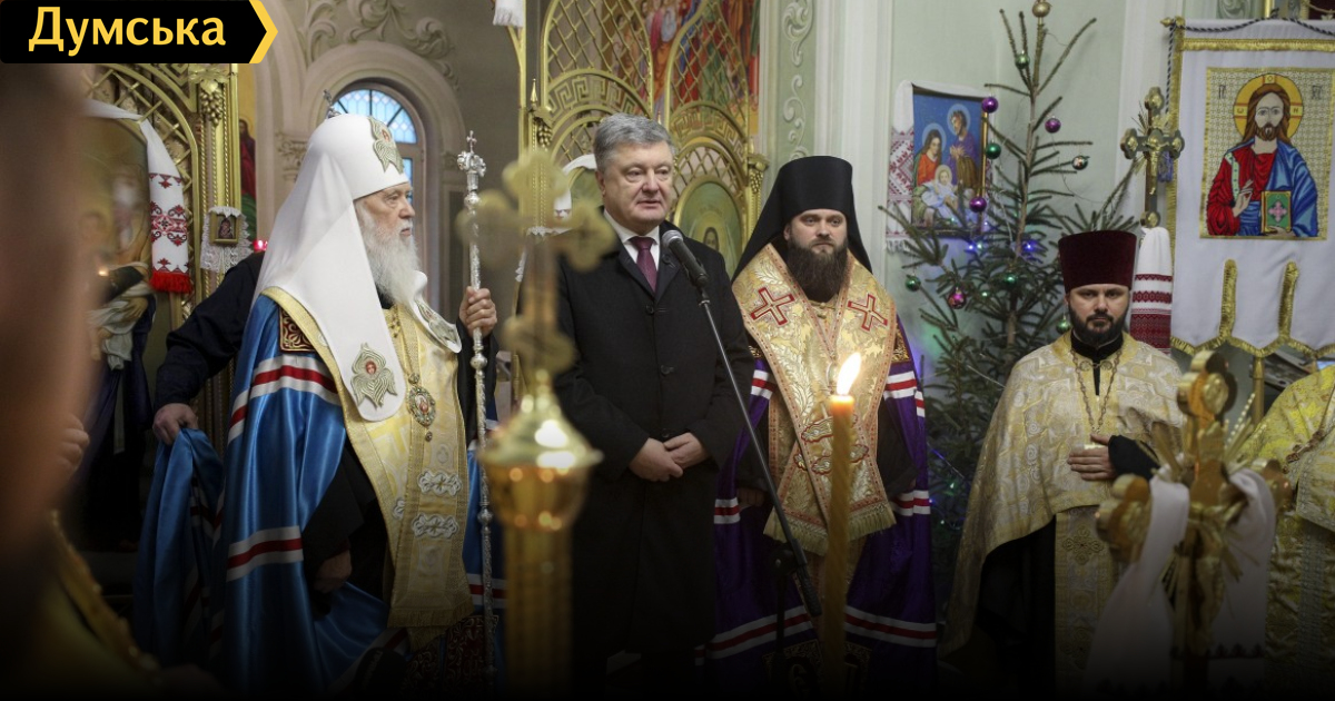 Президент Украины Петр Порошенко принял участие в предрождественском молебне, который прошел сегодня в Свято-Успенском храме села Мирное Беляевского района Одесской области. Глава государства находится в нашем регионе с рабочим визитом. Вместе с ним в богослужении участвовали почетный патриарх Православной церкви Украины Филарет и одесский епископ Павел. «Эти дни мы запомним навсегда. Мы с вами стоим на пороге получения Томоса. Мы стоим на пороге большой радости. Мы стоим не просто на пороге рождественских праздников, а присутствуем при рождении украинской автокефальной церкви», — обратился глава государства к верующим. Он напомнил, что 15 декабря на объединительном соборе в Киеве было принято решение о создании Православной Церкви Украины и был избран ее предстоятель. «Я хочу поблагодарить его святость Филарета. Жертвенность, которую его святейшество демонстрировал все это время Мы просто не имеем таких примеров в истории Украины», — подчеркнул глава государства и добавил, что патриарх поставил вопрос создания церкви гораздо выше, чем личную судьбу. «Без этого церковь не была бы создана, — сказал руководитель страны. — Много раз казалось, что ситуация заходит в тупик. И только мудрость его святейшества и мудрость вселенская позволили нам найти эту дорогу к нашей объединенной церкви», — сказал президент. Он также поблагодарил митрополита Макария, митрополита Симеона (бывший иерарх УПЦ МП, перешедший в Украинскую православную церковь) и всем иерархам, которые «приняли очень мудрое решение». Президент особо подчеркнул, что новая украинская церковь «идет ко всем с любовью и тот, кто принял для себя решение оставаться в церкви, которая сохраняет общение и руководство со стороны России, это его выбор»: «Никто не запрещает вам ходить в церковь и начинать службу Божью с молитвы за Россию, если это ваш выбор», — отметил Петр Порошенко. СМЕРТЬ РОСІЙСЬКИМ ОКУПАНТАМ! Помітили помилку? Виділяйте слова з помилкою та натискайте control-enter