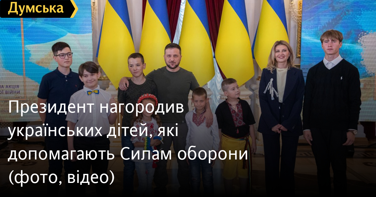 Українських дітей, які, незважаючи на юний вік, допомагають Збройним силам, нагородив з нагоди Дня молоді Президент України, Верховний головнокомандувач ЗС України Володимир Зеленський.