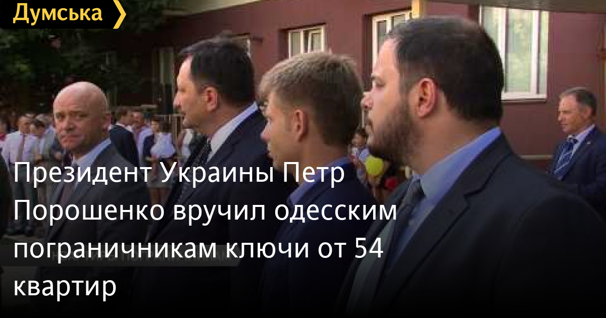 Президент Украины Петр Порошенко вручил одесским пограничникам ключи от 54 квартир, в новом построенном доме. Так же защитники родины получили новые звания. На встрече побывала Мишель Арманд