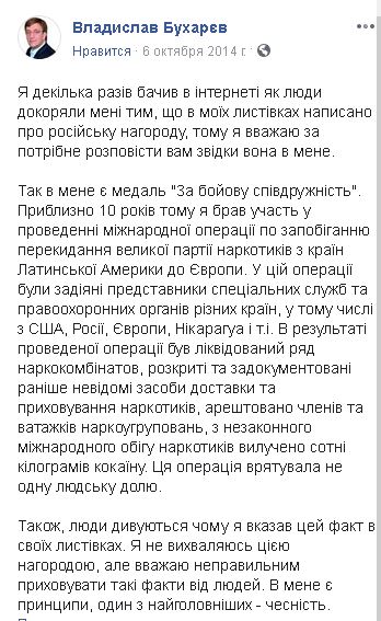 О чем он сам же и рассказал еще в 2014 году! И медаль эта от 2004 года — за участие в международной операции против наркоманов, вместе с США в том числе.