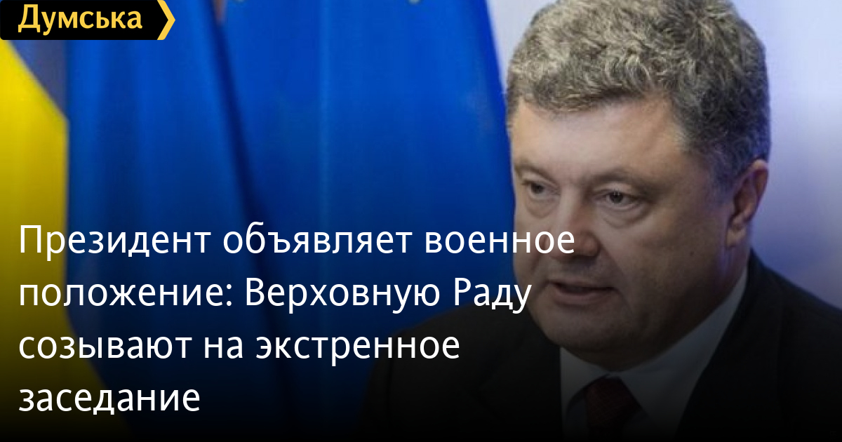 Президент Украины Петр Порошенко обратился к Верховной Раде с просьбой рассмотреть вопрос введения военного положения по всей территории страны сроком на 60 дней.