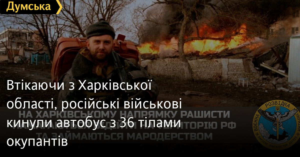 Як повідомили у Головному управлінні розвідки МО України, спішно покидаючи територію нашої країни, загарбники вкрали автобус, але за шість кілометрів кинули його. Усередині було виявлено 36 тіл окупантів.