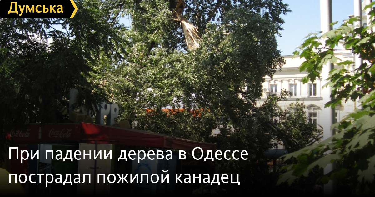 Гражданин Канады пострадал вчера из-за падения крупной ветки дерева на Привокзальной площади в Одессе. 67-летний мужчина был госпитализирован в Еврейскую больницу (ГКБ №1) с черепно-мозговой травмой.