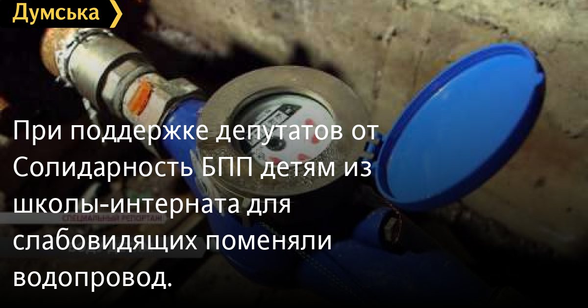 При поддержке депутатов от «Солидарность» БПП детям из школы-интерната для слабовидящих поменяли водопровод.Детям из школы-интерната для слабовидящих поменяли водопровод. Школьники регулярно сидели без воды. Кроме того, из-за постоянных подтоплений учебное здание дало трещину и могло обрушиться. СМЕРТЬ РОССИЙСКИМ ОККУПАНТАМ! Заметили ошибку? Выделяйте слова с ошибкой и нажимайте control-enter Думская ТВ. Сюжеты: