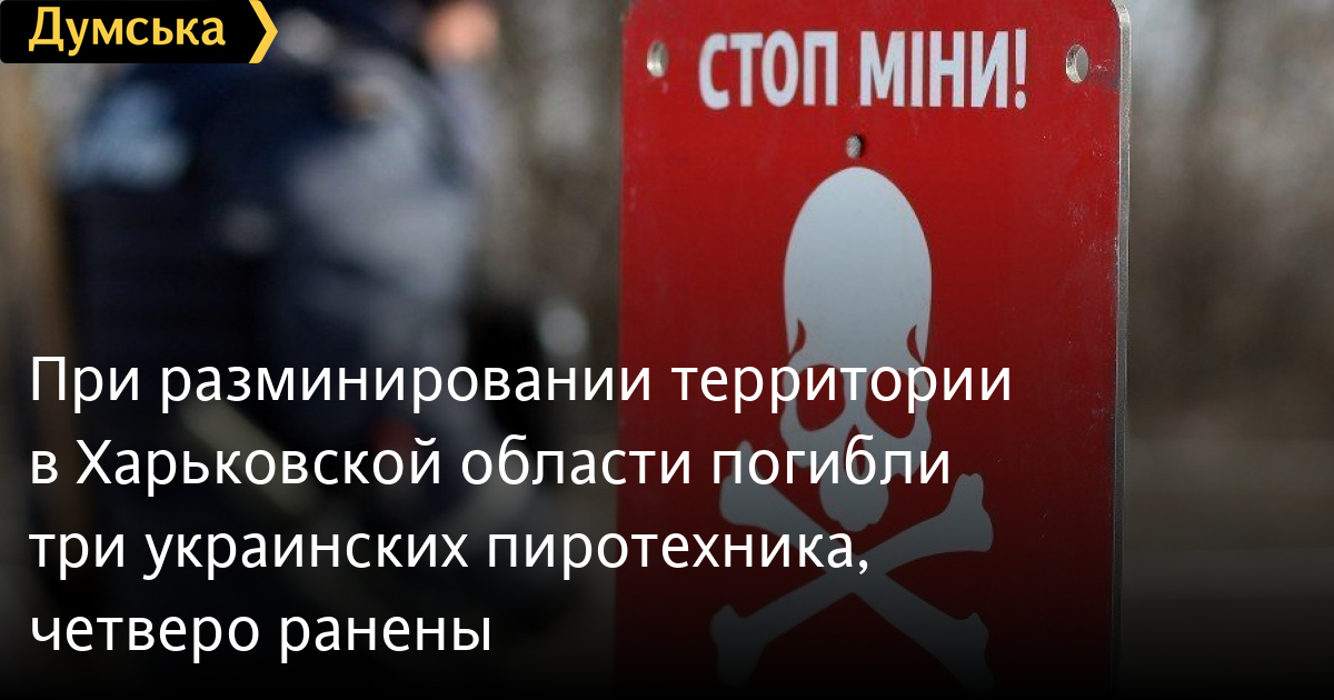Во время проведения работ по разминированию территории в Харьковской области 16 апреля погибли три украинских пиротехника, четверо тяжело ранены.