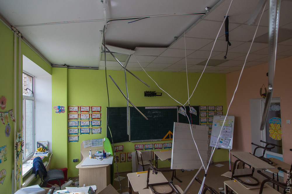 «23 лютого. Класна робота», — аккуратная надпись выведенная каллиграфическим почерком на школьной доске в разбитом взрывной волной классе. Словно из другой эпохи, другого измерения, где миллионы людей спокойно спят в своих кроватях, мариупольцы гуляют в парке возле театра и еще живы 140 украинских детей.