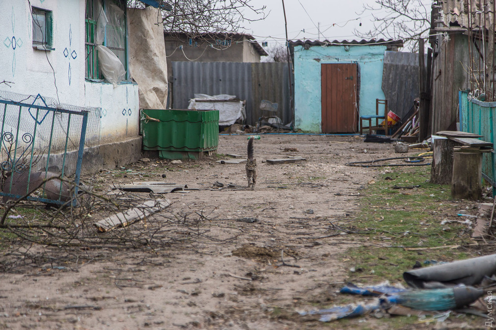 Из жителей — только домашние животные, которых не успели эвакуировать селяне. В одном из дворов, возле дома со снесенной крышей и обугленными окнами, надрывается цепной пес. Непонятно, чего больше в охрипшем лае: желания отпугнуть непрошеных гостей от хозяйского дома или просьбы о куске хлеба. Подходишь ближе, и злой пес превращается в маленького щенка. А сзади уже бежит голодная, худая и ласковая, как ребенок, кошка…