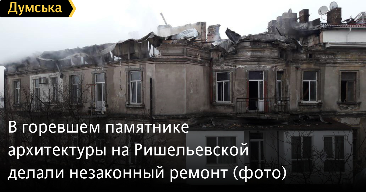 В мэрии предполагают, что причиной пожара на Ришельевской, 11 могли стать незаконные ремонтные работы в квартире №28 на четвертом этаже.