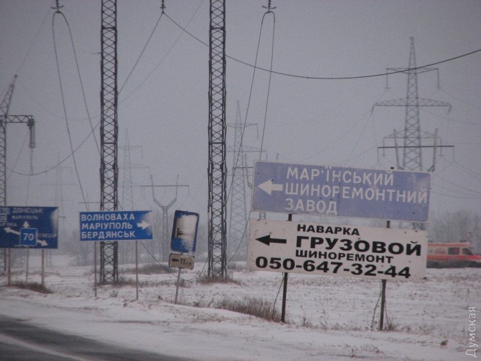 О том, что мы едем по Донецкой области, напоминают не только похожие на загадочные горные массивы терриконы шахт, но и толстый налет на автомобиле жирной угольной грязи, смешанной с черным снегом. Ровнейшее дорожное полотно – свидетельство, что сбежавший экс-президент уделял особое внимание электорату «своих» областей, — часто сменяется глубокими ямами и ухабами. Это уже следы пришедшей сюда войны. Тяжелая армейская техника и перегруженные фуры с контрабандным товаром оставляют на дорогах резкие асфальтные «наплывы», которые моя неприхотливая машинка то и дело задевает днищем. Если это происходит на скорости, раздается ужасный скрежет, словно автомобилю режут брюшко без наркоза. Невольно поджимаешь ноги и ягодицы, как будто это может спасти машину.