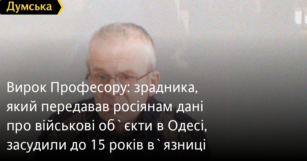 До 15 років позбавлення волі з конфіскацією майна засудив Приморський районний суд Одеси Юрія Т. на прізвисько Професор, якого на початку серпня затримали в Одесі за співпрацю з рф.