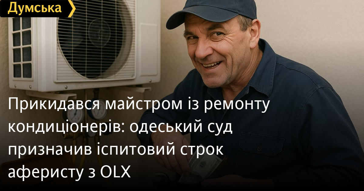 Прикидався майстром із ремонту кондиціонерів: одеський суд призначив іспитовий строк аферисту з OLXПівтора року обмеження волі умовно отримав одеський аферист, який представлявся майстром із ремонту кондиціонерів та ошукував людей. Лише за 10 днів шахраєві вдалося виманити понад 25 тис. гривень у п'ятьох одеситів. Відповідний вирок днями виніс Приморський районний суд Одеси. Ще на початку року чоловік розмістив оголошення на дошці OLX, в якому пропонував свої послуги. Незабаром перший клієнт зателефонував та запропонував роботу. Наступного дня чоловіки зустрілись та замовник передав повну оплату — 4700 гривень. Обвинувачений гроші забрав та зник. Подібна шахрайська схема спрацювала ще декілька разів. В суді обвинувачений покаявся та визнав у повному обсязі свою провину. Також він додав, що добровільно повернув гроші усім потерпілим. Втім суд визнав «майстра» винним у скоєнні злочину (ч.1 ст.190, ч.2 ст. 190 Кримінального Кодексу України — шахрайство), але звільнив його від реального відбуття покарання у виді обмеження волі з випробуванням, встановивши іспитовий строк на один рік. СМЕРТЬ РОСІЙСЬКИМ ОКУПАНТАМ! Помітили помилку? Виділяйте слова з помилкою та натискайте control-enter |