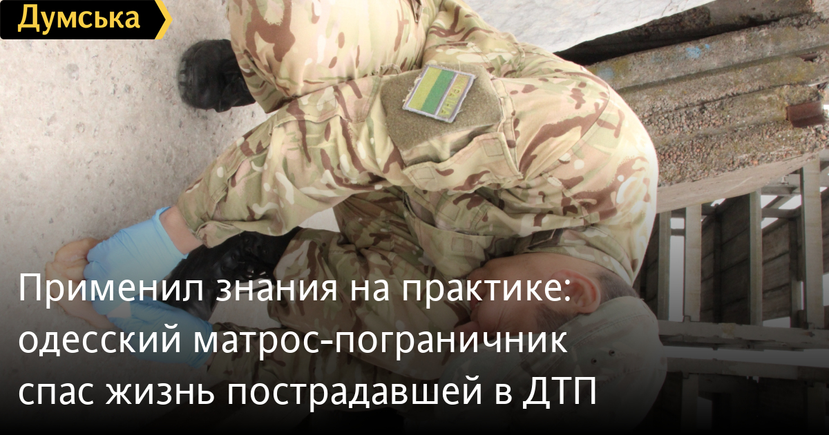 Произошло это сразу после тренинга по тактической медицине, в котором участвовал военнослужащий. Возвращаясь домой, он стал свидетелем дорожно-транспортного происшествия на улице Черноморского Казачества. Пограничник бросился на помощь сбитой одесситке. Водитель легковушки сам находился в шоковом состоянии и не мог адекватно действовать.
