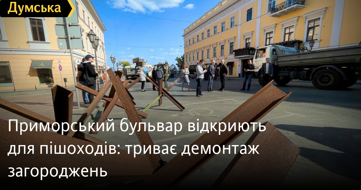 Приморський бульвар відкриють для пішоходів: триває демонтаж загородженьПриморський бульвар відкриють для пішоходів. За словами мера Одеси Геннадія Труханова, рішення узгоджене з військовими. Наразі почалися роботи з демонтажу огороджень. Безперешкодно прогулятися бульваром одесити та гості міста зможуть вже найближчими днями. «Ми робимо все можливе, аби кожен мав змогу насолодитись красою Одеси. Проте, як і раніше, треба дотримуватись усіх правил безпеки та вимог військових. Бережіть себе та своїх близьких людей!» — сказав Геннадій Труханов. СМЕРТЬ РОСІЙСЬКИМ ОКУПАНТАМ! Помітили помилку? Виділяйте слова з помилкою та натискайте control-enter |