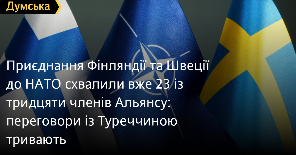 Вже 23 із 30 членів Північноатлантичного Альянсу схвалили приєднання до нього Фінляндії.