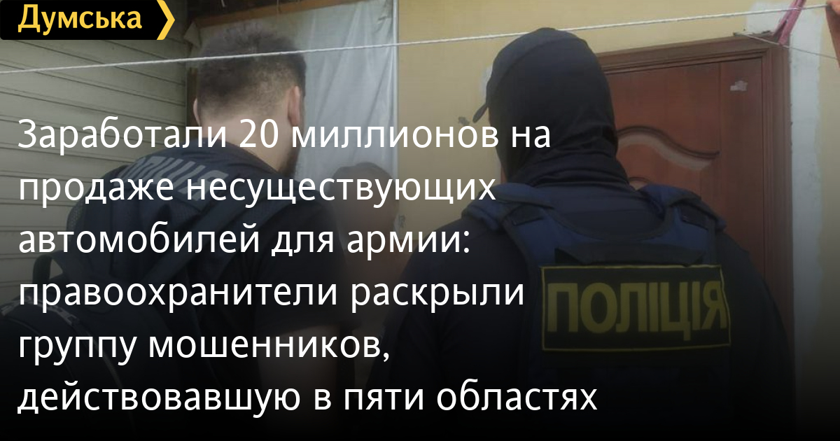 Заработали 20 миллионов на продаже несуществующих автомобилей для армии: правоохранители раскрыли группу мошенников, действовавшую в пяти областяхОрганизованную группу мошенников, присвоившую 20 миллионов гривен под видом продажи автомобилей и квадрокоптеров для Вооруженных Сил Украины, раскрыли правоохранители. Дельцы промышляли на территории пяти областей — Одесской, Харьковской, Хмельницкой, Черкасской и Днепропетровской, сообщили в Офисе генпрокурора. Злоумышленники размещали на известных торговых интернет-площадках объявления о продаже легковых автомобилей с доставкой из-за рубежа и квадрокоптеров для нужд украинской армии по наиболее привлекательной цене. Они получали предоплату от военных и волонтеров, но товар так и не доставляли. Организатору и трем его подельникам сообщили о подозрении в мошенничестве (ч. 3, ч. 5 ст. 27, ч. 4 ст. 190 УК Украины). Полиция провела 22 обыска по месту регистрации и проживания фигурантов. Изъяты банковские карты, компьютерная техника, мобильные телефоны, сим-карты и прочее. СМЕРТЬ РОССИЙСКИМ ОККУПАНТАМ! Заметили ошибку? Выделяйте слова с ошибкой и нажимайте control-enter |