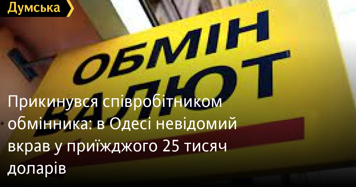 Під виглядом працівника пункту обміну валют невідомий вкрав 25 тисяч доларів у приїжджого в центрі Одеси.