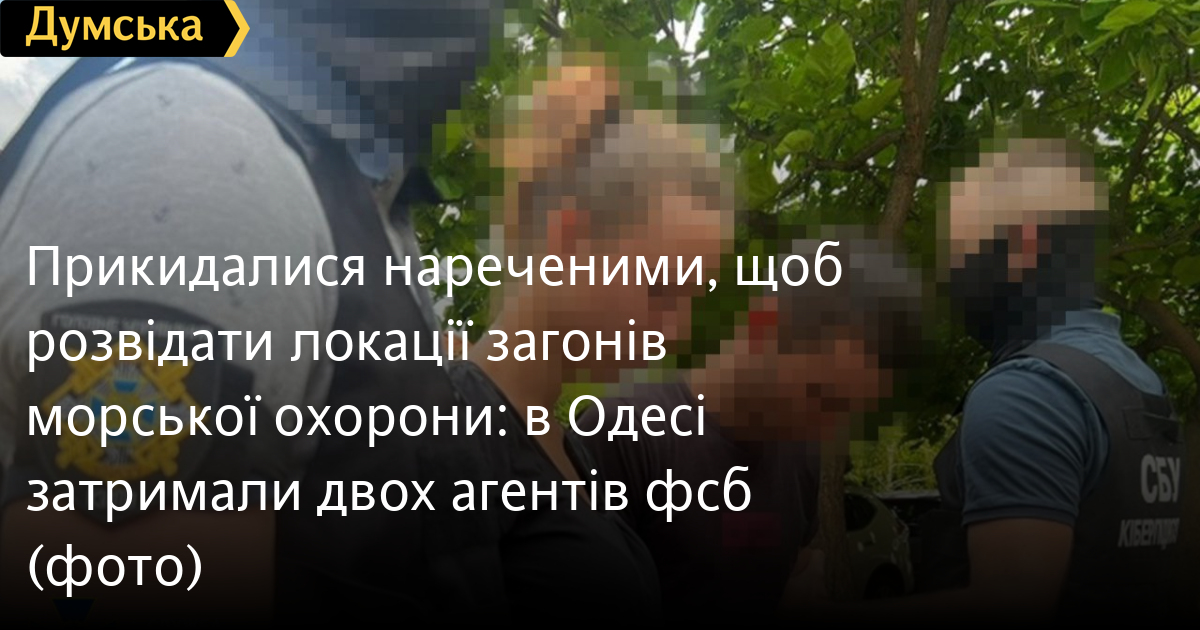 Двох агентів фсб, які розвідували локації прикордонних загонів морської охорони в Одеській області, затримали правоохоронці.