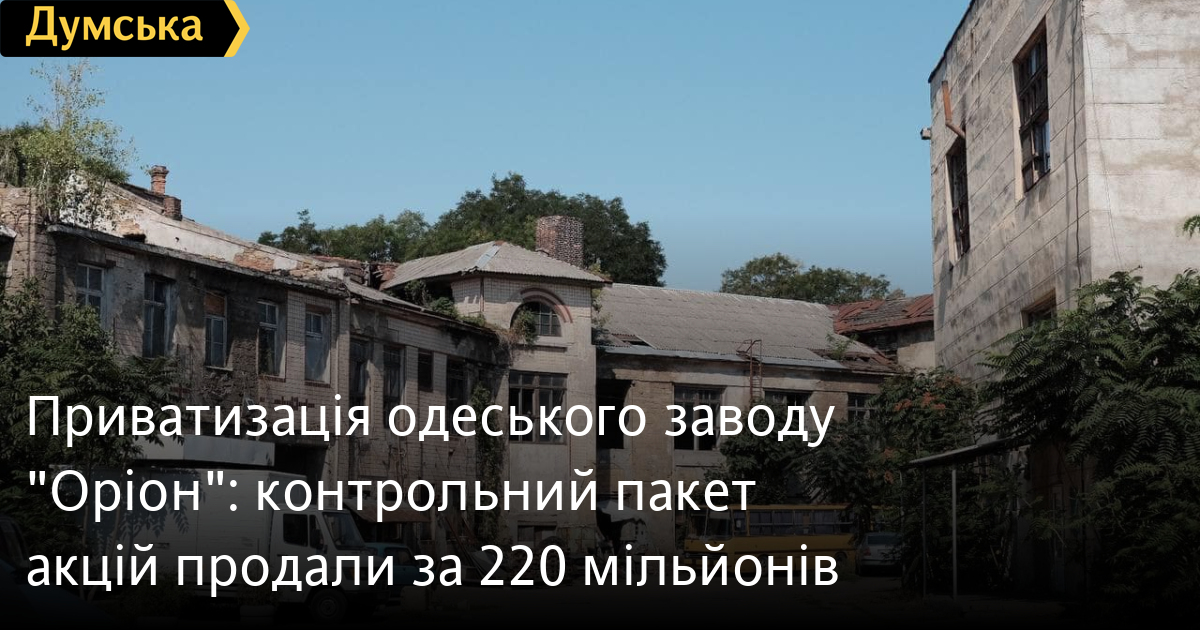Контрольний пакет акцій ПАТ «Машинобудівне об'єднання «Оріон» було продано на аукціоні за 220 мільйонів гривень.