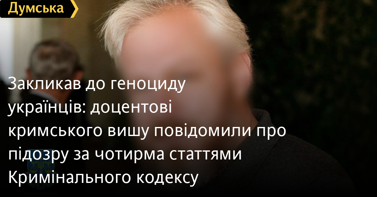 У такий спосіб цей «доцент», будучи публічною особою, що має вплив на аудиторію, виправдовував дії ворога та перетворював громадян України на легітимну та необхідну мішень для знищення», — повідомили в Офісі генпрокурора.