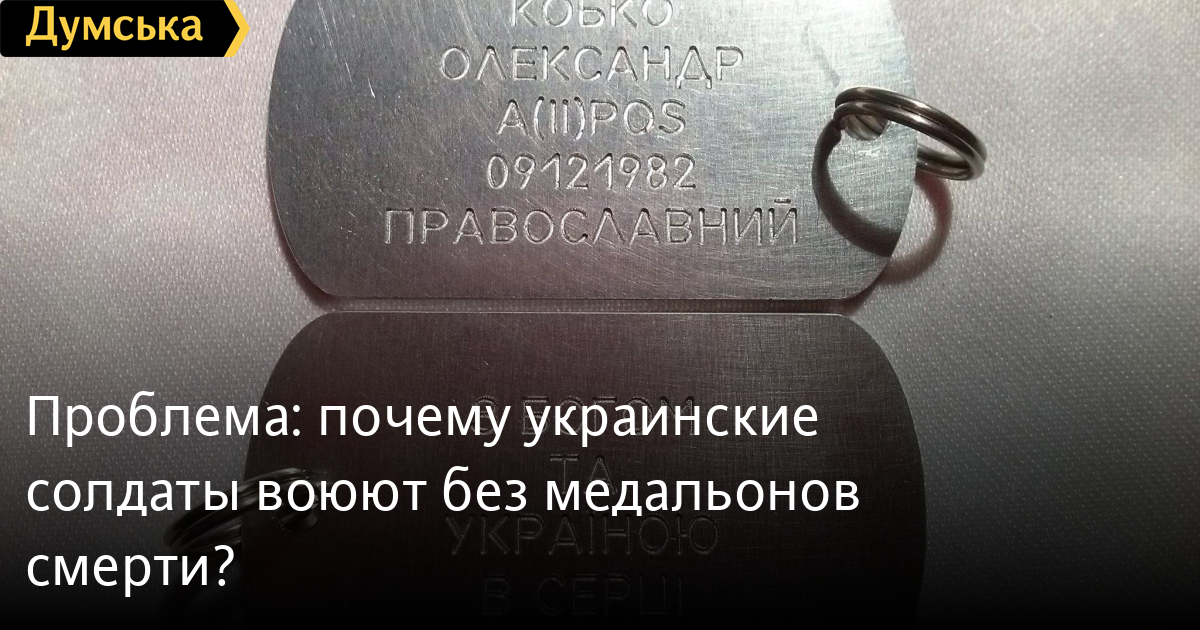 Как оказалось, до мая в Вооруженных силах Украины действовал приказ министра обороны СССР от 1982 года «О введении в действие Наставления по учету личного состава Советской Армии и Военно-Морского Флота», но выполнялся он через пень-колоду. В частности, военное руководство отчего-то решило, что медальоны стоит выдавать только отправляющимся на войну. Само собой, когда грянула оная, на складах жетонов не оказалось.