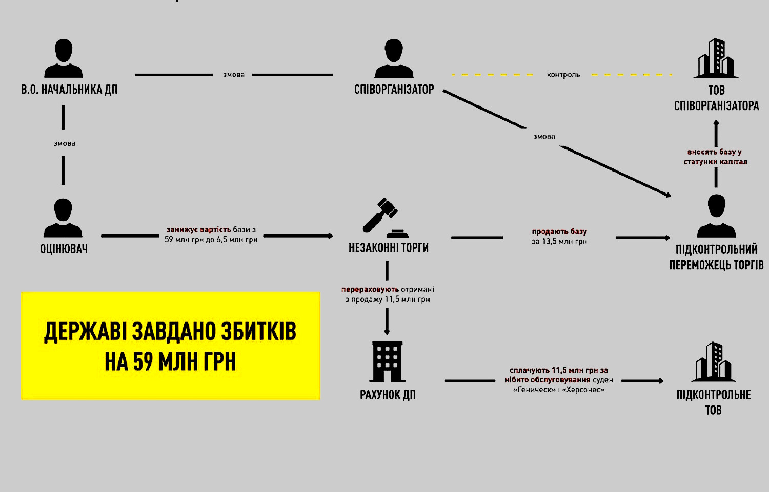 Організаторів корупційної схеми на держпідприємстві «Чоразморшлях» викрили детективи НАБУ. Головну базу технічного обслуговування флоту в порту Чорноморськ площею 4,3 га з виходом до моря незаконно приватизували, а гроші від продажу розтратили. «Думська» дізналася подробиці афери. За нашою інформацією, одним з організаторів виявився колишній в.о. керівника держпідприємства Денис Булдаков, якого вже відправили під арешт на 60 діб. Він може вийти під заставу 20 млн гривень. Разом із Булдаковим аферу провертали оцінювач майна та ще двоє спільників, яким також висунули підозру. За даними слідства, базу технічного обслуговування флоту в порту Чорноморська оцінили у 6,5 млн гривень, а потім продали на торгах за 13,5 млн. Хоча, за даними НАБУ, її реальна вартість — щонайменше 59 мільйонів. Відразу після продажу базу внесли до статутного капіталу підконтрольній аферистам фірмі. Але це не все. Отримані від продажу 11,5 млн гривень перерахували ще одній підконтрольній фірмі на технічне обслуговування суден «Генічеськ» та «Херсонес», які знаходилися в Індії. А компанія, яка отримала гроші, жодного відношення до обслуговування суден не мала. Цікаво, що з березня 2022 року до липня 2025-го Булдаков неодноразово виїжджав до Молдови, а двоє його неповнолітніх дітей проживають у Данії. У листопаді 2023-го він зареєстрував у Кишиневі компанію SMART GRAIN TRADING, а у 2024 році НАБУ зуміла провести там обшуки. Восени 2025 року він влаштувався начальником юридичного відділу Ренійської філії ДП «Адміністрація морських портів України». Примітно, що раніше Булдаков керував Новобелярською організацією «Партії регіонів». Був депутатом-регіоналом Комінтернівської райради. СМЕРТЬ РОСІЙСЬКИМ ОКУПАНТАМ! Помітили помилку? Виділяйте слова з помилкою та натискайте control-enter |