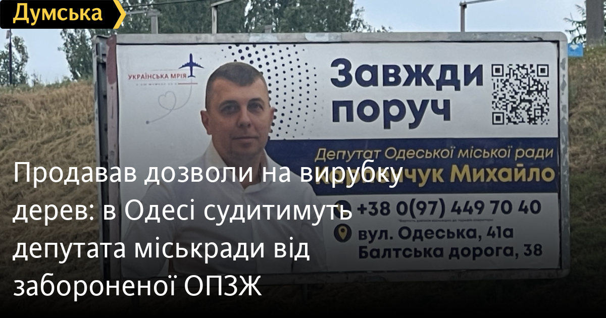 Продавав дозволи на вирубку дерев: в Одесі судитимуть депутата міськради від забороненої ОПЗЖПеред судом за отримання хабара постане депутат Одеської міської ради від забороненої ОПЗЖ Михайло Карпенчук. Він збагачувався за рахунок того, що продавав дозволи бізнесменам на вирубку дерев. До злочинної діяльності проросійський депутат залучив членів очолюваної ним комісії, а також посадових осіб комунальних підприємств і структурних підрозділів міськради. Охочі спиляти дерево мали заплатити від двох до п'яти тисяч доларів. Гроші переказували на спеціально відкритий криптовалютний рахунок. Правоохоронці задокументували два випадки отримання хабарів у розмірі семи тисяч доларів. Депутата затримали в липні минулого року під час отримання другого траншу. Попри це, в жовтні минулого року Карпенчук вирішив звести кафе у сквері Старостіна, на Слобідці. Місцеві жителі виступили проти будівництва в зеленій зоні. Примітно, що за документами руїни, на яких має з'явитися новий заклад, фігурують як житловий будинок на дві квартири. Документів на землю в депутата немає. Декларацію про початок будівництва 14 вересня 2023 року зареєстрував міський ДАБК, який очолює ще один депутат міськради від забороненої ОПЗЖ Олександр Авдєєв — керівник групи «Українська мрія», до складу якої входить Карпенчук. У середині листопада 2023 року люди виходили на мітинг під мерію, вимагаючи зупинити незаконне, на їхню думку, будівництво. Помітили помилку? Виділяйте слова з помилкою та натискайте control-enter