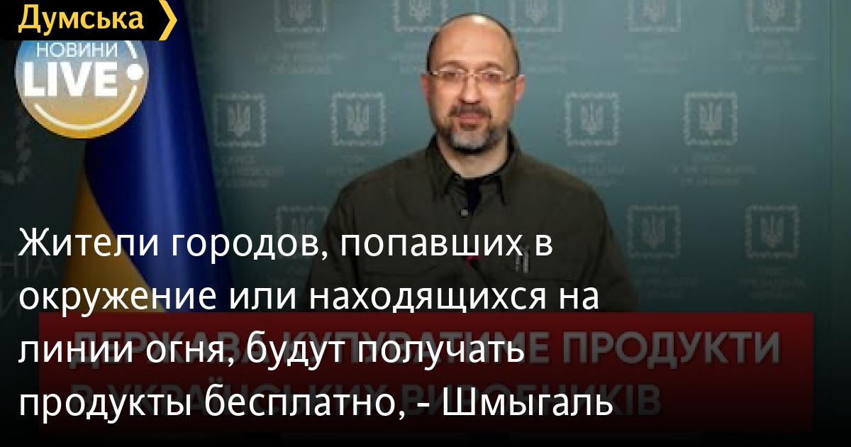 «Мы не можем допустить, чтобы украинцы остались без продовольствия, поэтому государство будет напрямую закупать у украинских производителей ключевые продукты, — рассказал Шмыгаль. — Эти продукты будут бесплатно раздаваться людям в тех местах, которые временно находятся в окружении или на линии боевых действий».