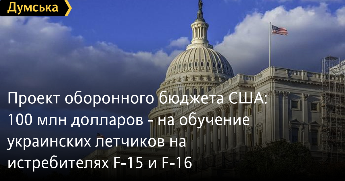 На военную помощь Украине (Ukraine Security Assistance Initiative, USAI) планируют выделить 1 млрд долларов, что на 700 миллионов больше, чем сейчас. Из них 100 млн пойдут на обучение украинских летчиков – по всей видимости, они будут осваивать истребители F-15 и F-16.