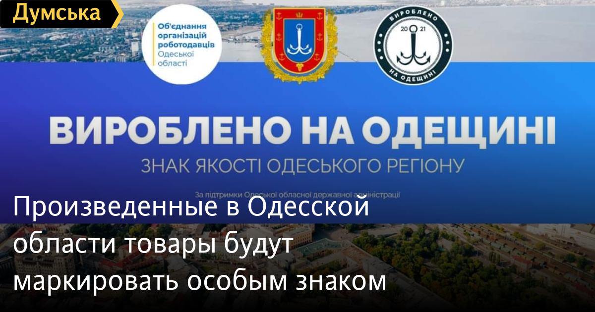 В Одесской областной государственной администрации утвердили знак «Вироблено на Одещині», который смогут использовать, как определенный бренд качества, региональные производители, соответствующие перечню требований по организации труда, уплате налогов и т.д.