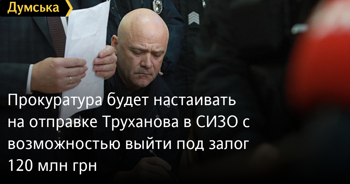 Специализированная антикоррупционная прокуратура будет ходатайствовать перед Высшим антикоррупционным судом Украины об избрании для мэра Одессы Геннадия Труханова меры пресечения в виде содержания под стражей с возможностью выхода на свободу под залог 120 млн грн.