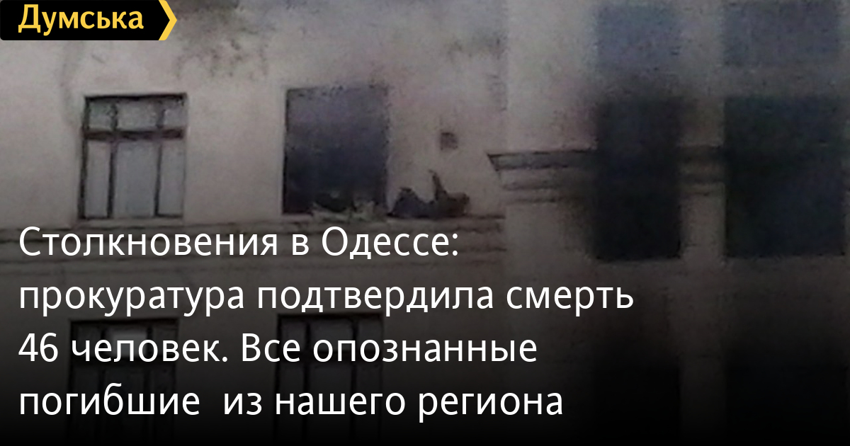 Прокурор Одесской области Игорь Боршуляк сообщил, что во вчерашних столкновений и пожара в Доме профсоюзов погибли 46 человек, более двухсот обратились за помощью в медицинские учреждения, 20 из которых – сотрудники милиции. Восемь человек скончались от падения с высоты.