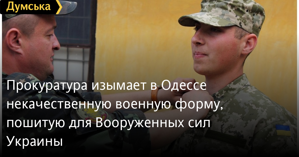 Группа прокуроров Главной военной прокуратуры Украины намерена изъять в одной из воинских частей, которые дислоцируются в Одессе, комплекты новой полевой униформы, пошитой компаниями «МИК», «Олтекс», «ВО Харьков» и «Текстиль-контакт» для Вооруженных сил.