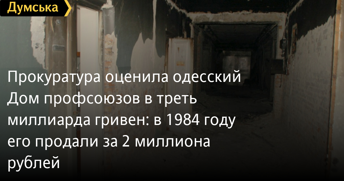 В исковом заявлении прокуратуры фигурирует рыночная стоимость здания Дома профсоюзов — 303 миллиона 376 тысяч 427 грн. Глава Федерации считает, что эта цифра взята с потолка: «Они умножили среднюю стоимость квадратного метра коммерческой недвижимости в центре города на площадь ДП (13746 квадратных метров соответственно)». Отметим, что в материалах уголовного производства указано совсем другое число — 3 млн грн. По мнению правоохранителей, такова остаточная стоимость Дома профсоюзов в тот трагический день.